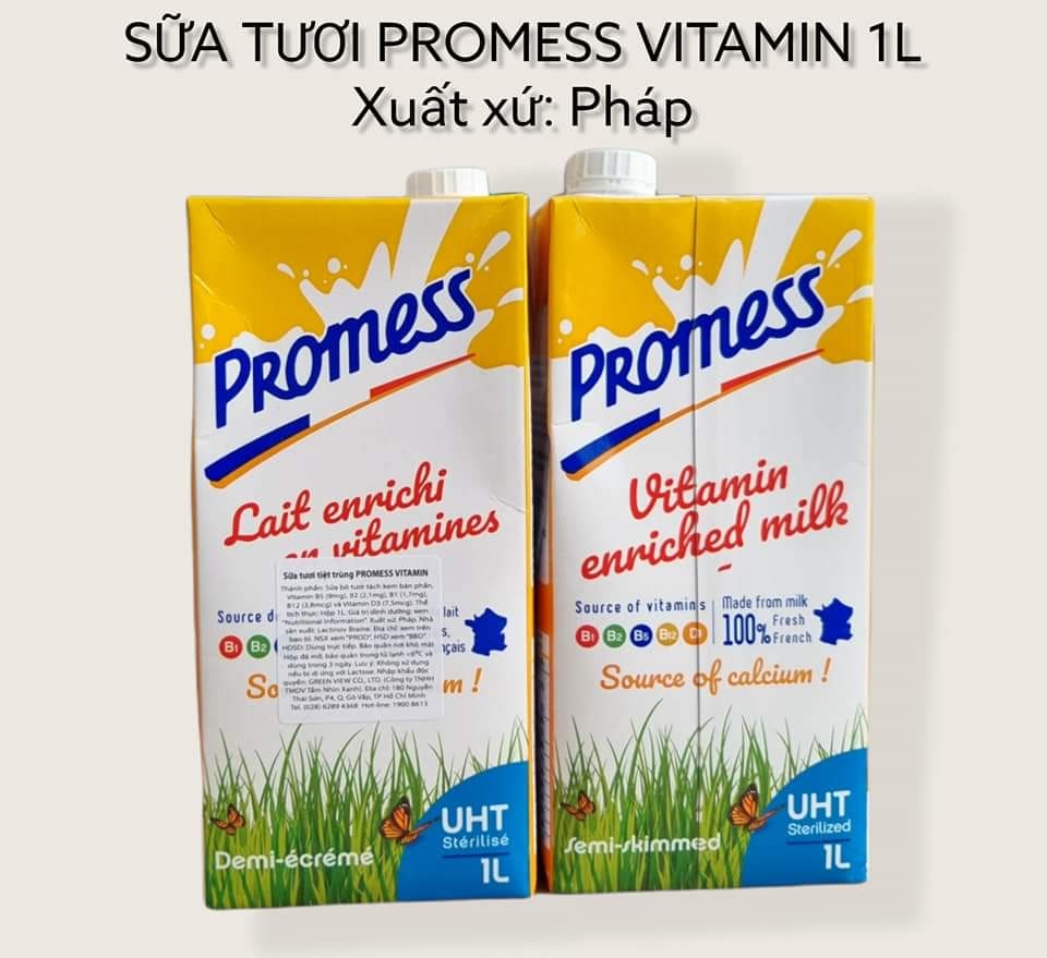 • Sữa tươi tiệt trùng Promess ít béo Giàu Vitamin hộp 1 Lít được xử lý giảm bớt lượng chất béo đưa về tiêu chuẩn 1.5%g Fat đồng thời bổ sung thêm 5 loại vitamin nhóm B và D3