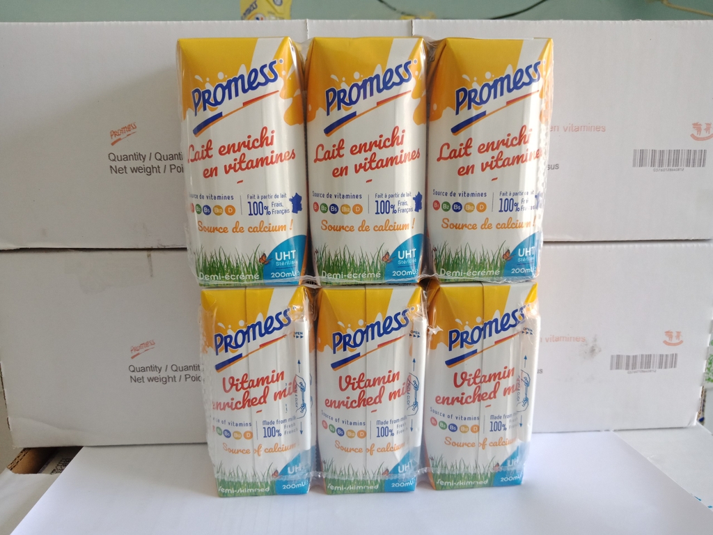 - Sữa tươi tiệt trùng Promess ít béo Giàu Vitamin hộp 1 Lít được sản xuất bởi Lactinov. Sản phẩm được làm từ 100% sữa tươi Pháp